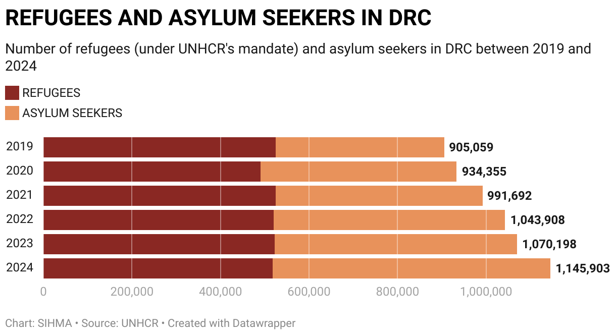 Number of refugees (under UNHCR's mandate) and asylum seekers in DRC between 2019 and 2024