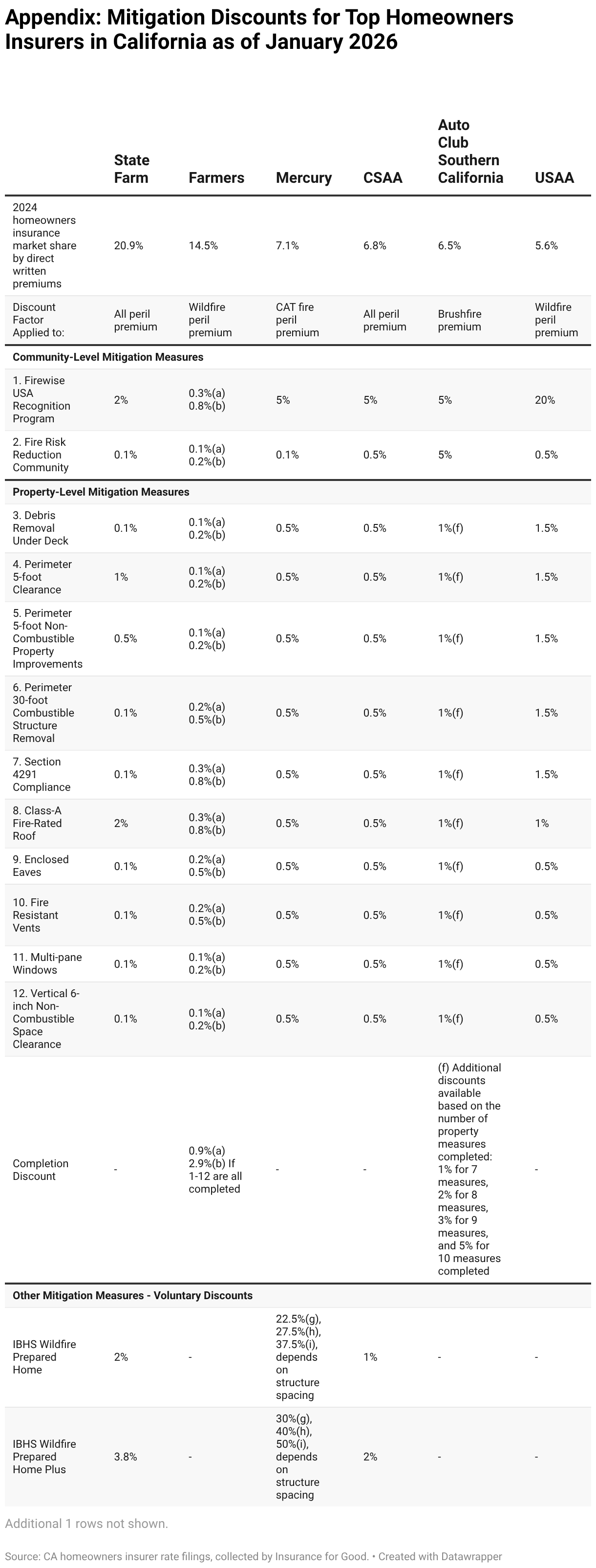 Appendix: Mitigation Discounts for Top Homeowners Insurers in California as of January 2026