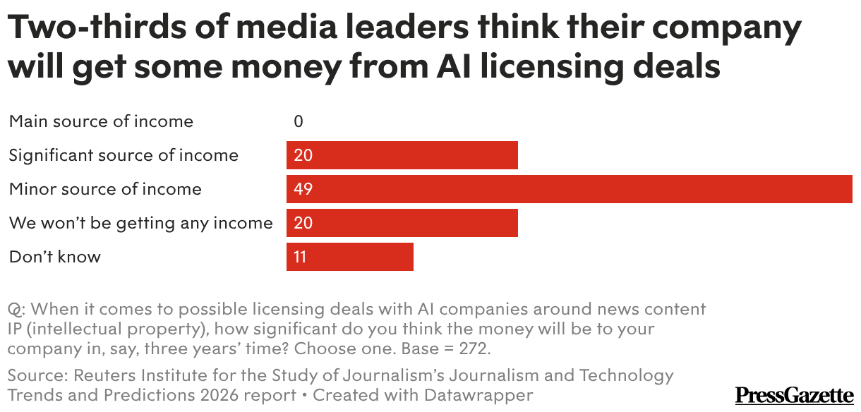 Two-thirds of media leaders think their company will get some money from AI licensing deals