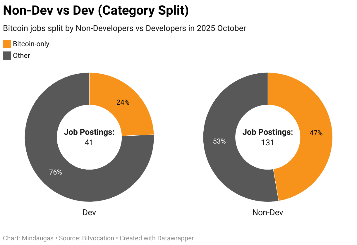 Bitcoin jobs split by Non-Developers vs Developers in 2025 October