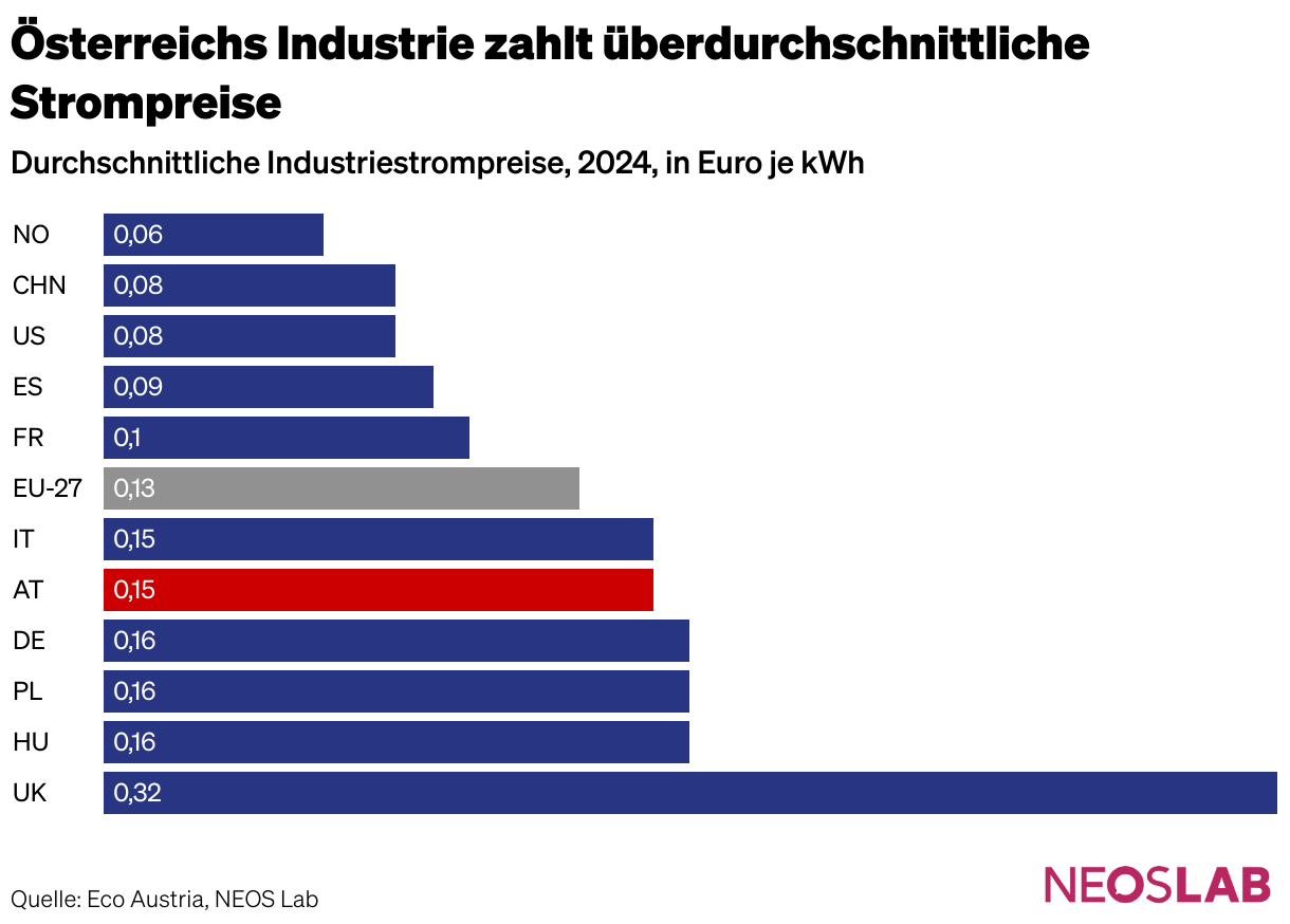 Durchschnittliche Industriestrompreise, 2024, in Euro je kWh