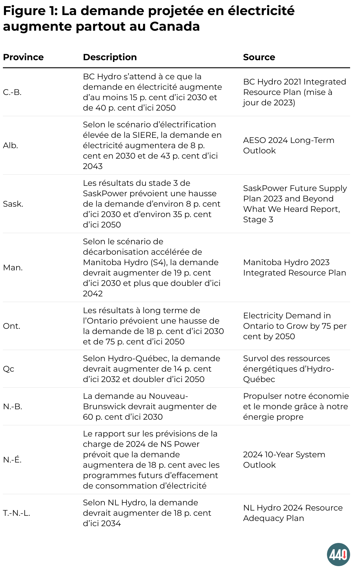 Figure 1: La demande projetée en électricité augmente partout au Canada