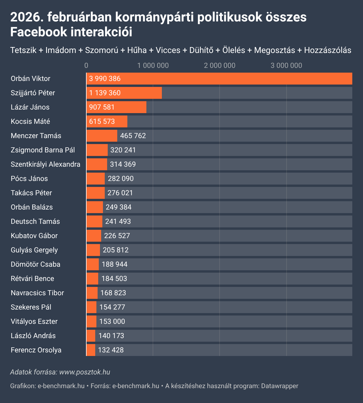 2026. februárban kormánypárti politikusok összes Facebook interakciói