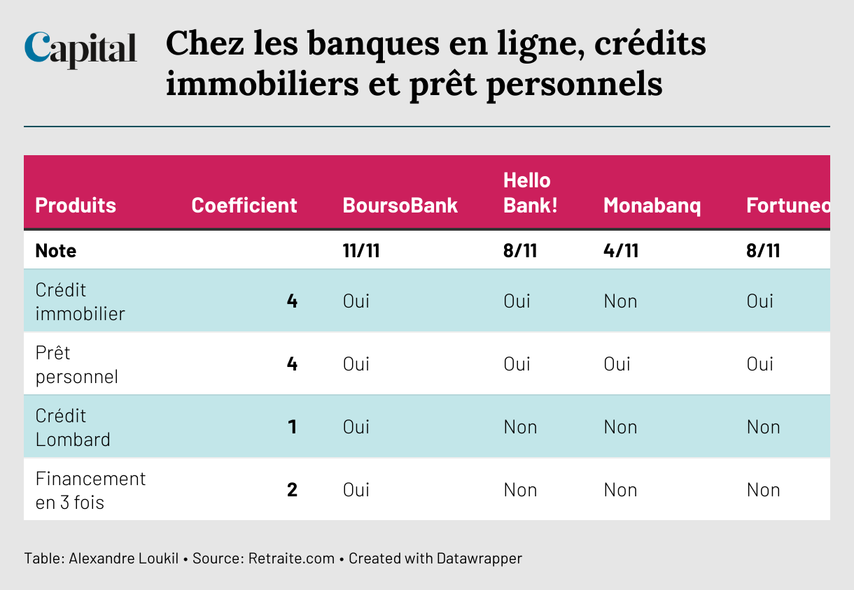 Chez les banques en ligne, crédits immobiliers et prêt personnels