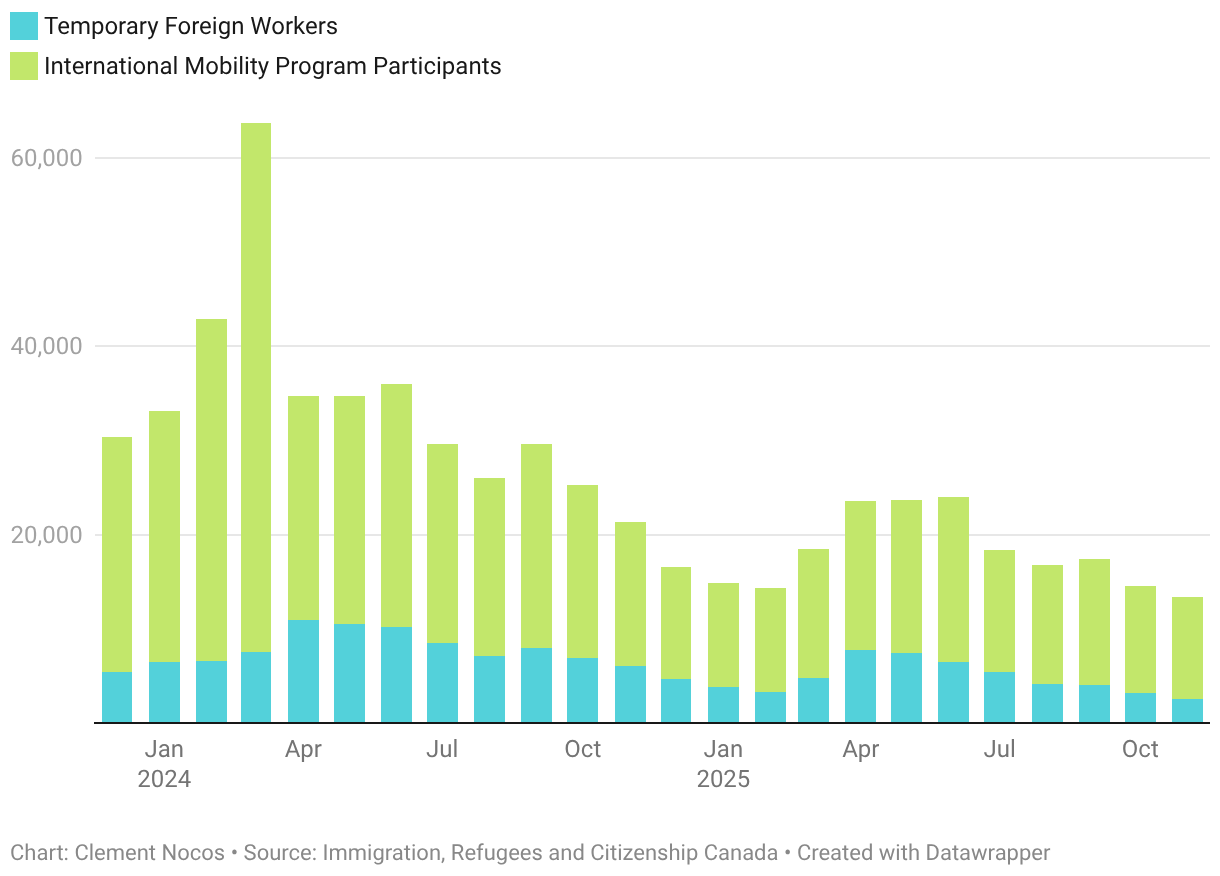 Chart: Clement NocosSource: Immigration, Refugees and Citizenship CanadaGet the dataDownload imageCreated with Datawrapper