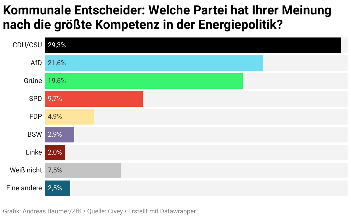 Kommunale Entscheider: Welche Partei hat Ihrer Meinung nach die größte Kompetenz in der Energiepolitik?