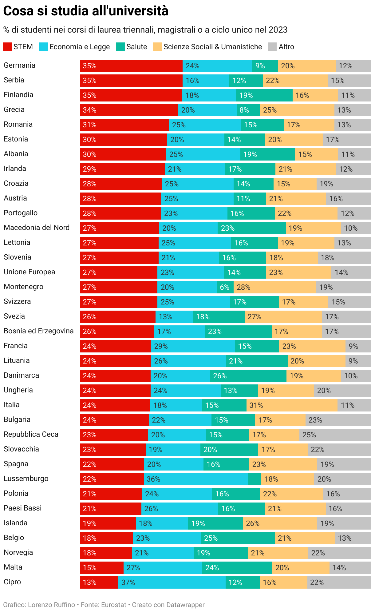 % di studenti nei corsi di laurea triennali, magistrali o a ciclo unico nel 2023