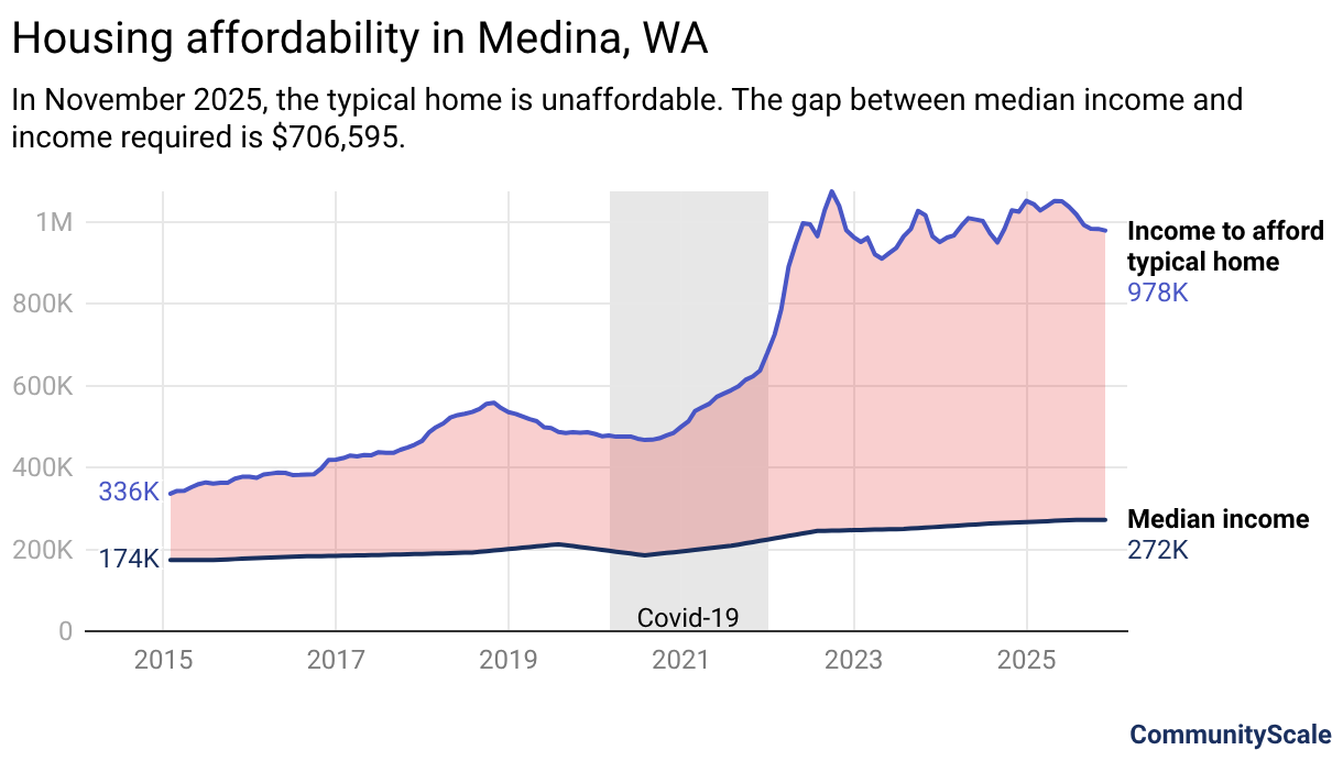 In November 2025, the typical home is unaffordable. The gap between median income and income required is $706,595.