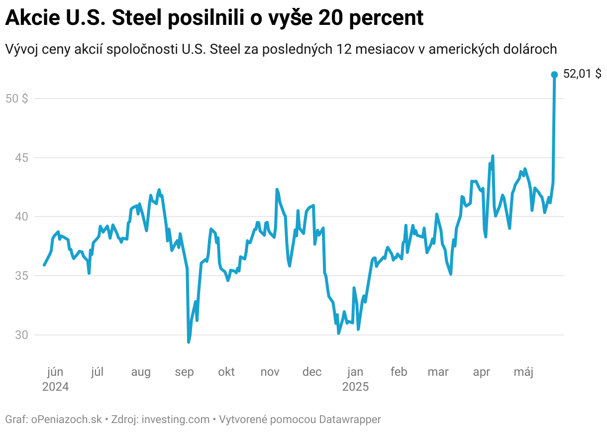 Vývoj ceny akcií spoločnosti U.S. Steel za posledných 12 mesiacov v amerických dolároch
