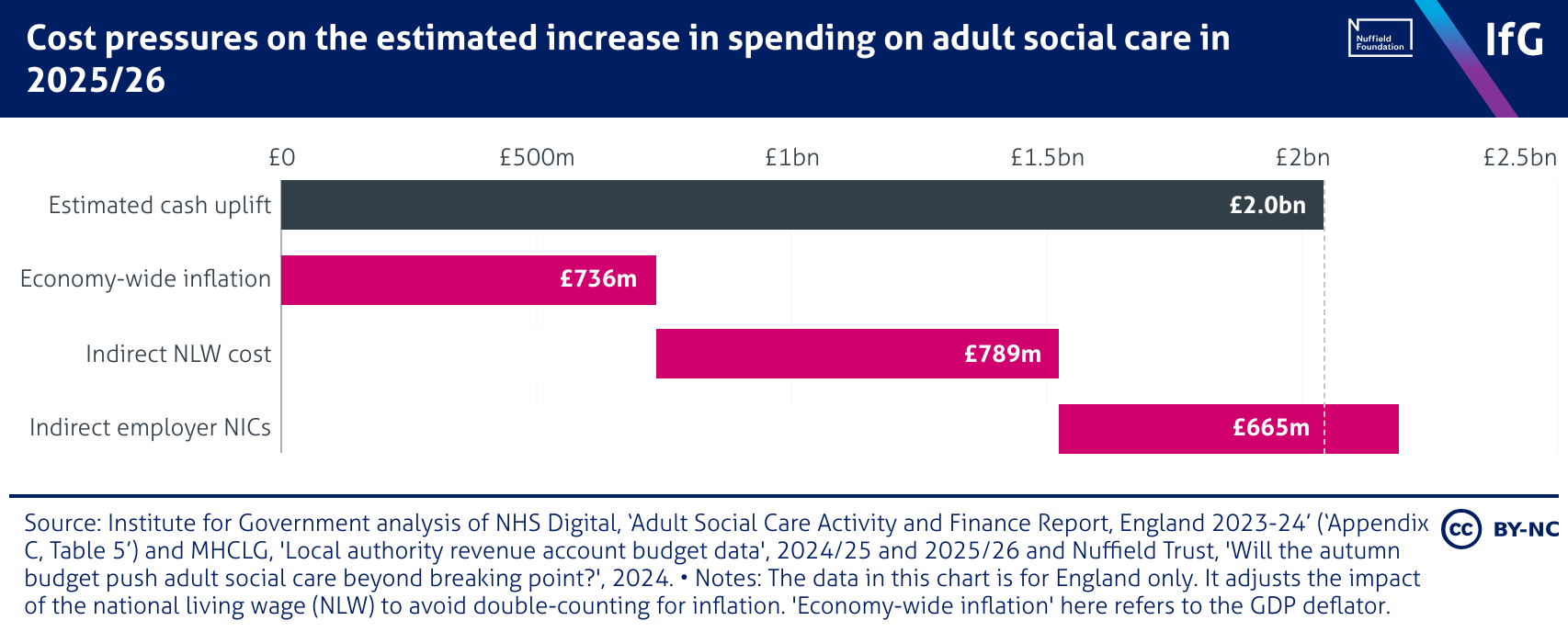 Cost pressures on the estimated increase in spending on adult social care in 2025/26