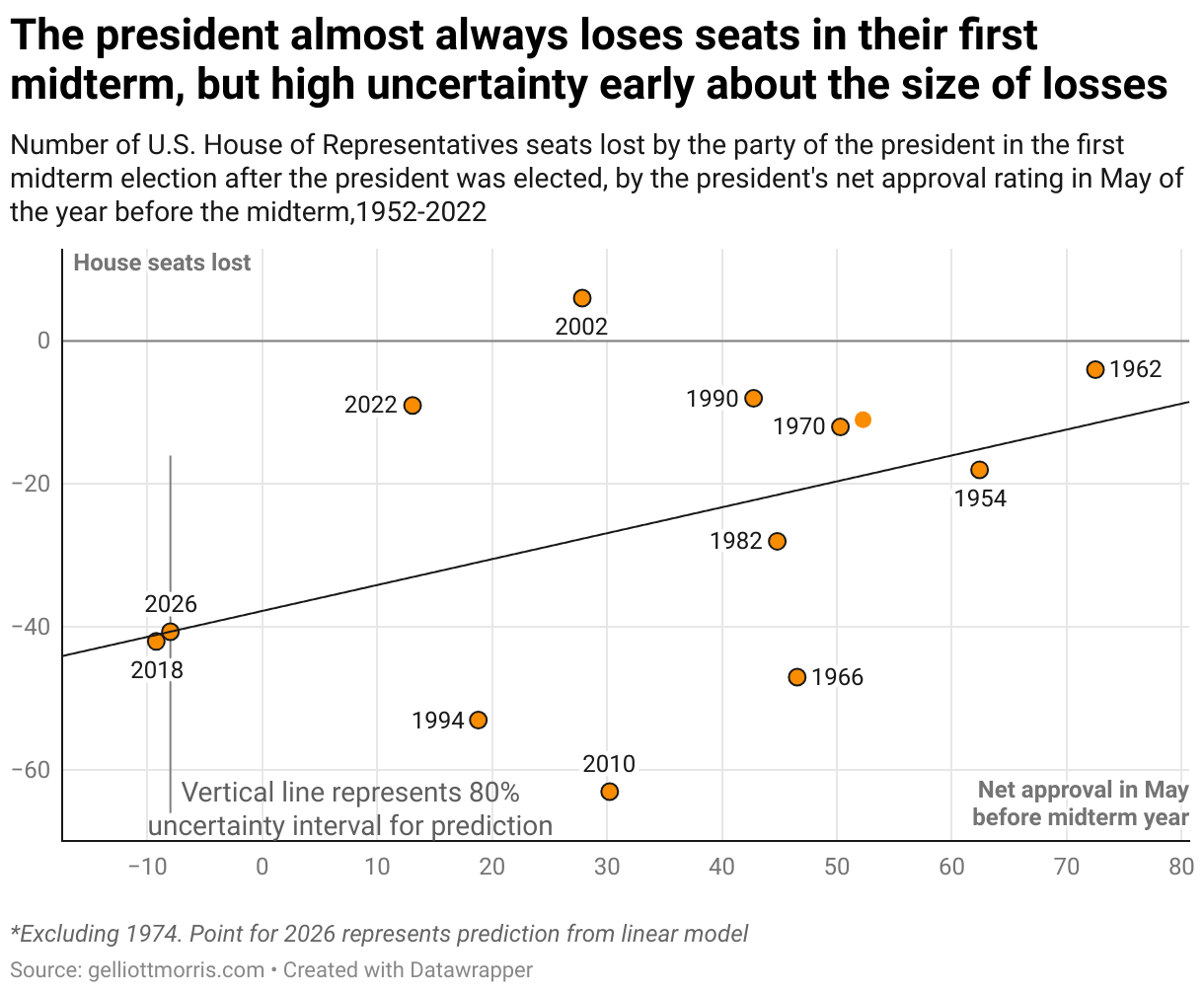 The president almost always loses seats in their first midterm, but high uncertainty early about the size of losses