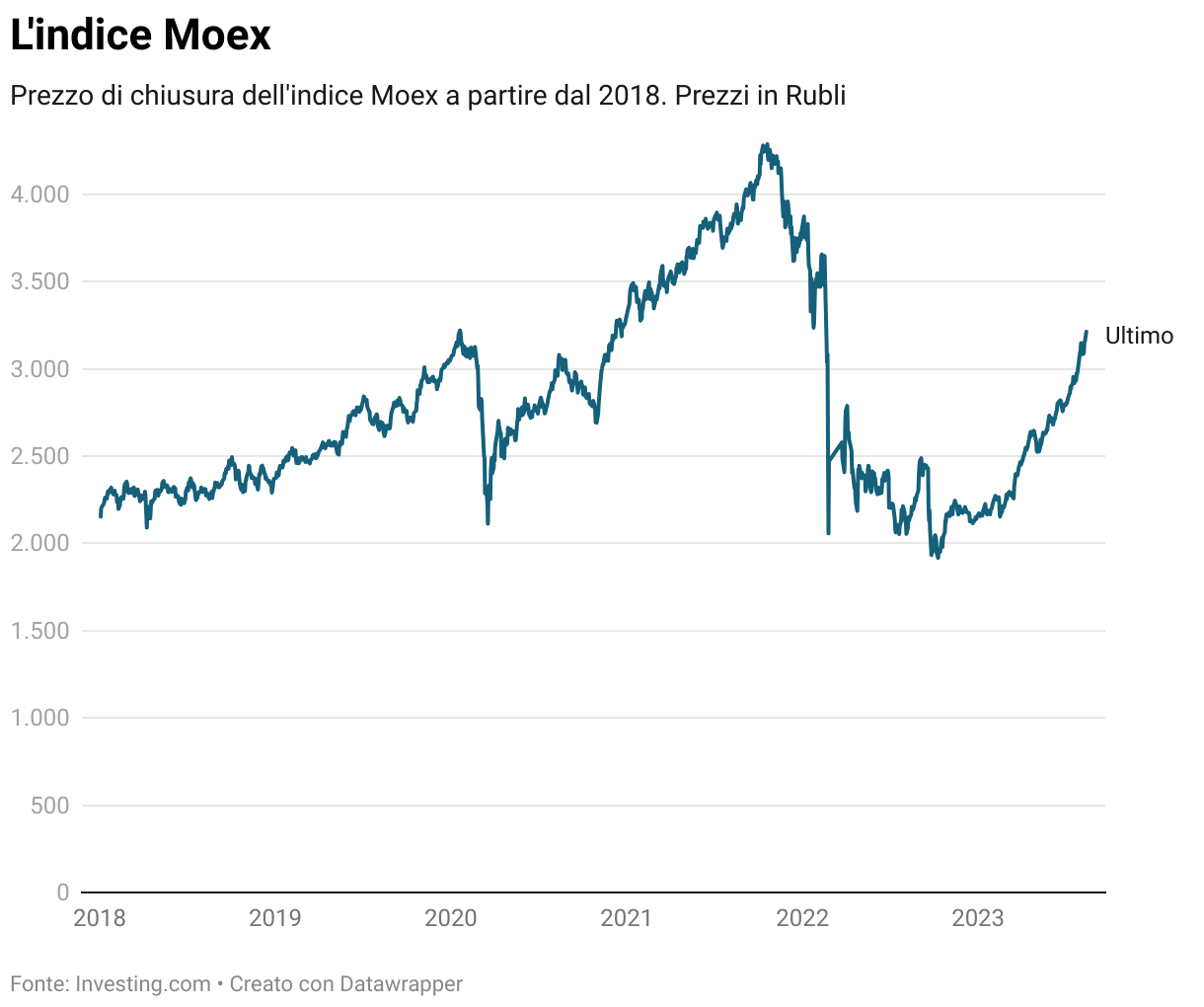 Prezzo di chiusura dell'indice Moex a partire dal 2018. Prezzi in Rubli