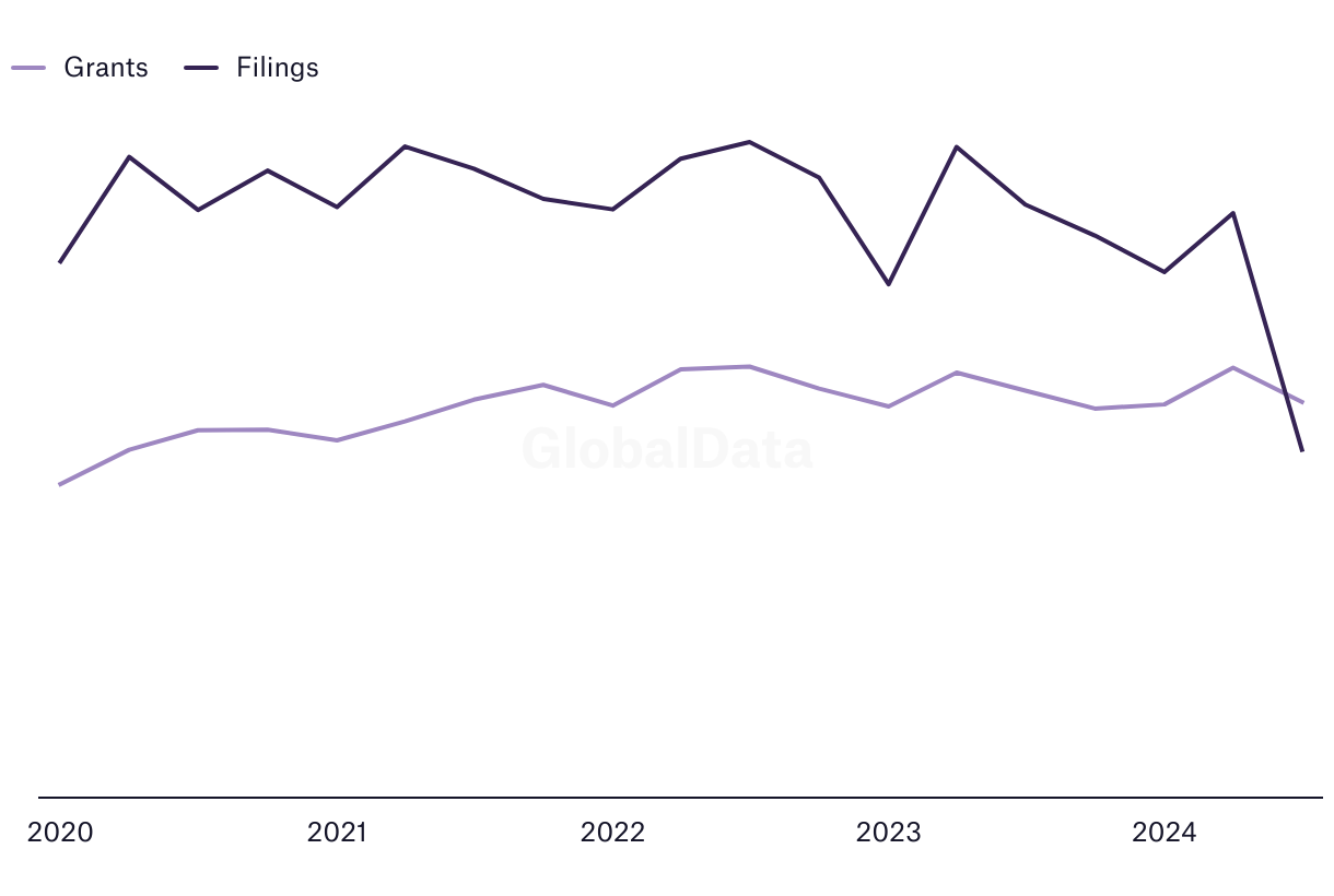 Patenting activity related to future of work in the global automotive industry, Q1 2020 – Q3 2024 (Total patent filings and grants)