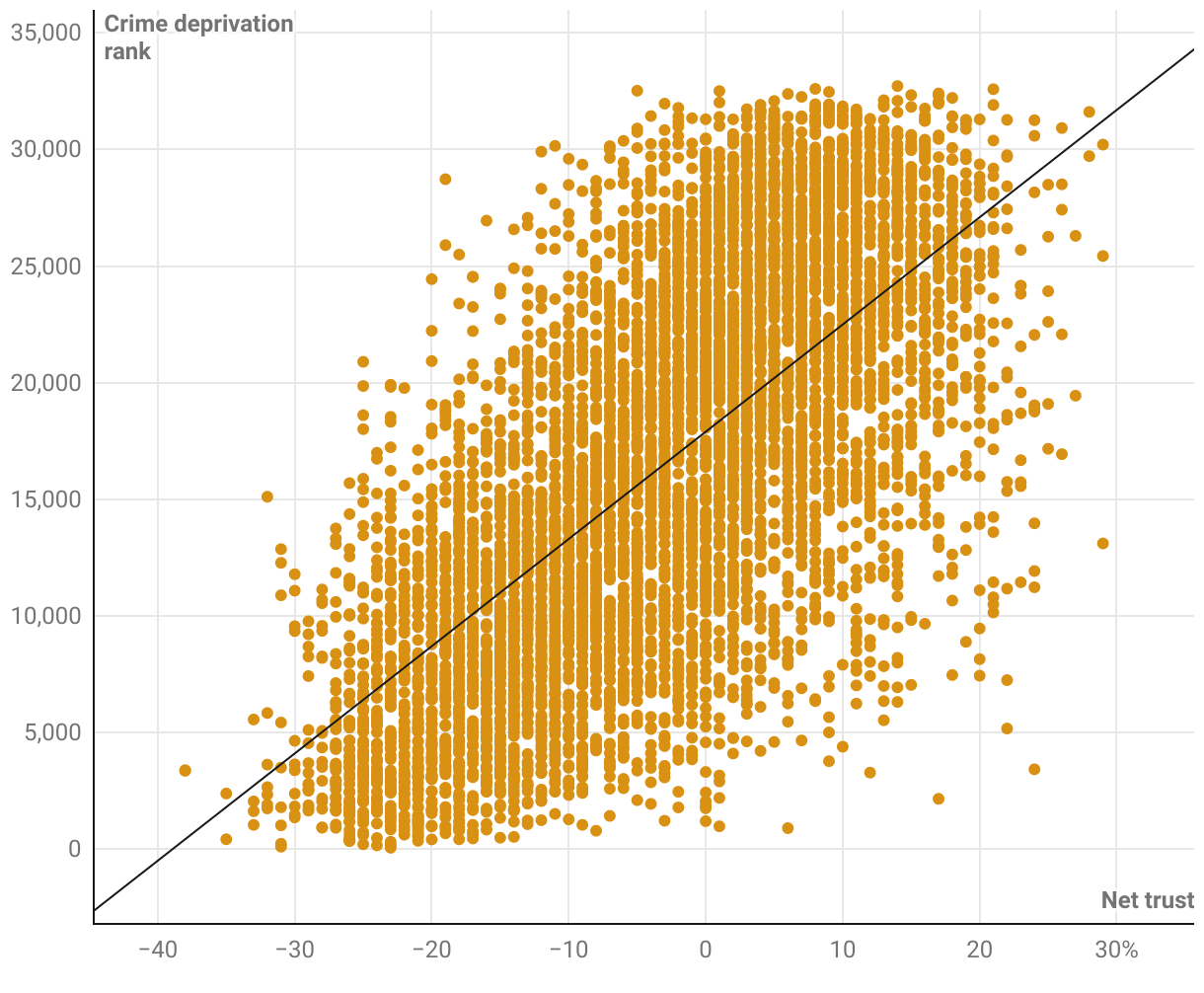 Social Trust vs Crime Deprivation (IMD)