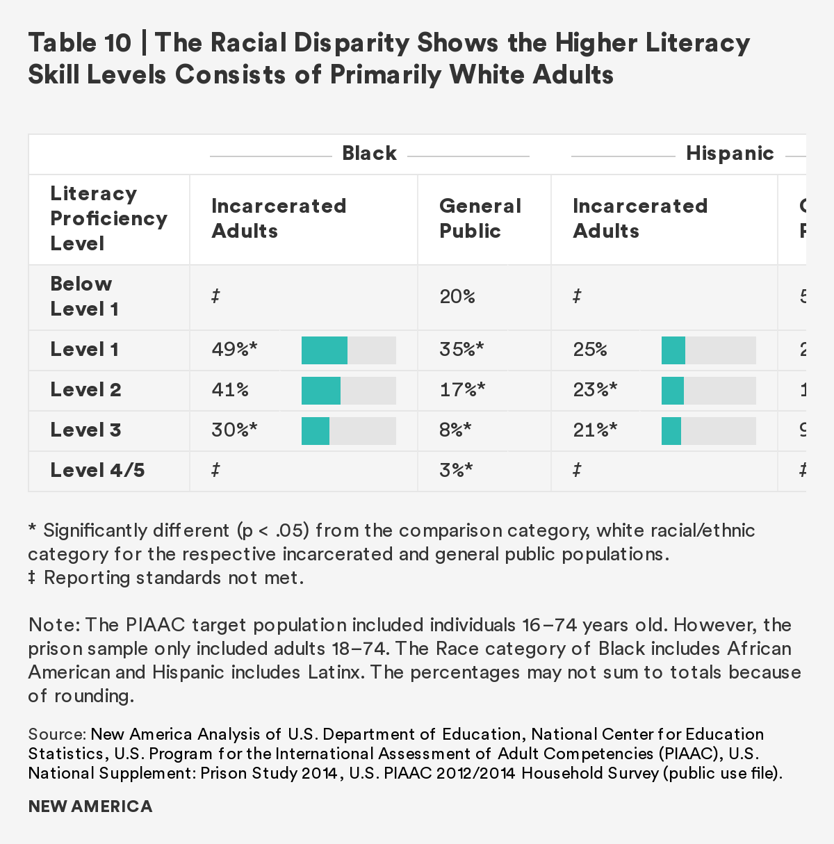 Note: The PIAAC target population included individuals 16–74 years old. However, the prison sample only included adults 18–74. The Race category of Black includes African American and Hispanic includes Latinx. The percentages may not sum to totals because of rounding.