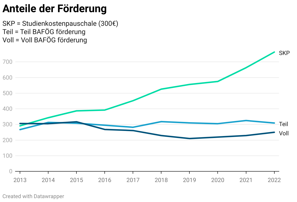 SKP = Studienkostenpauschale (300€) Teil = Teil BAFÖG förderung Voll = Voll BAFÖG förderung