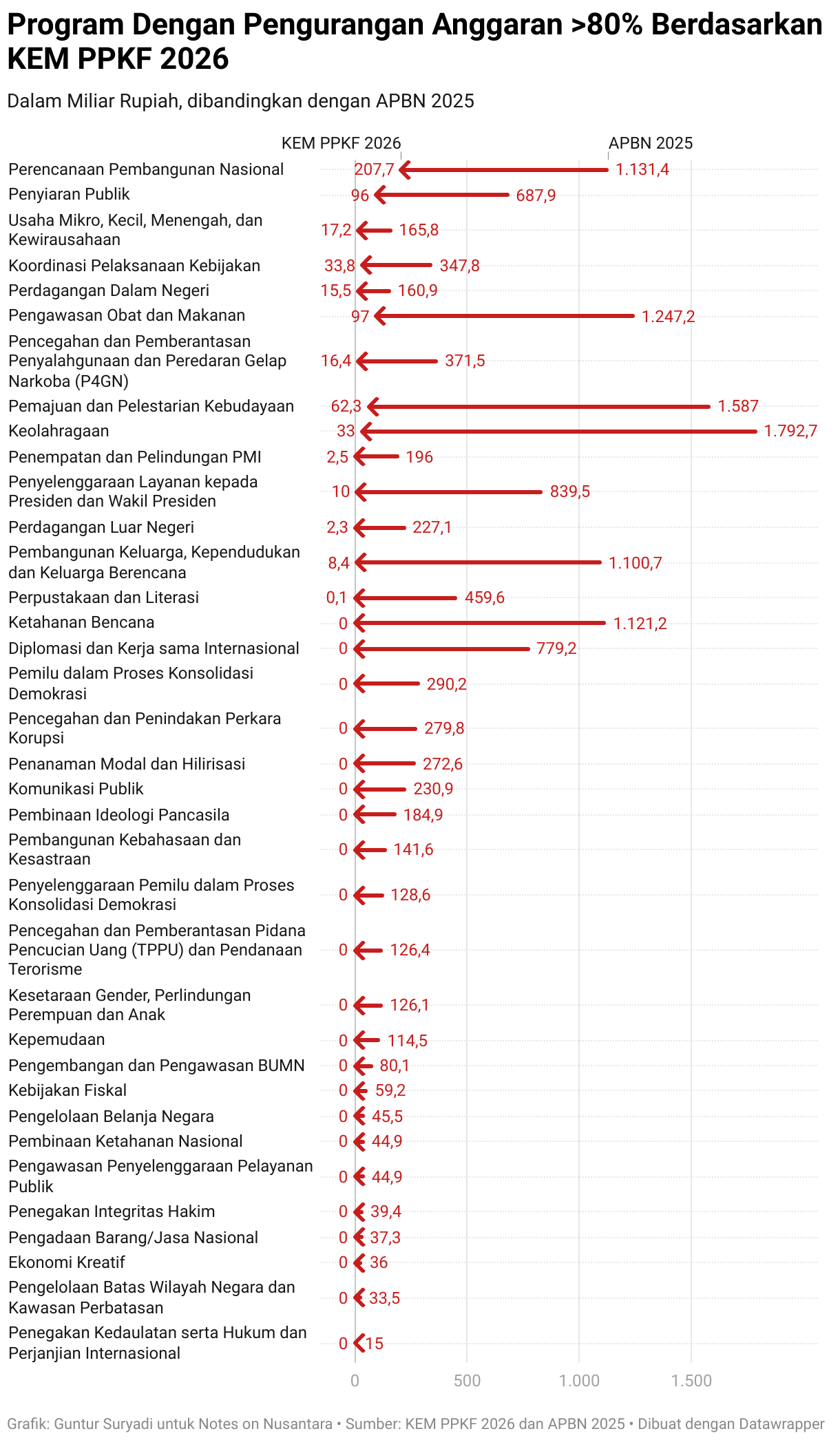 Dalam Miliar Rupiah, dibandingkan dengan APBN 2025