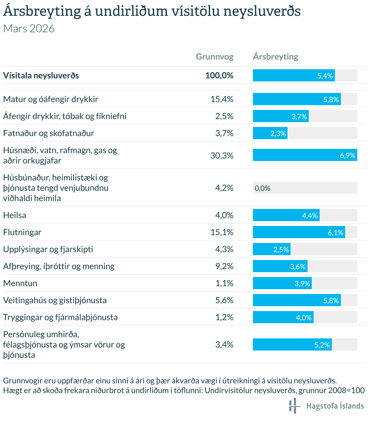 Ársbreyting á undirliðum vísitölu neysluverðs