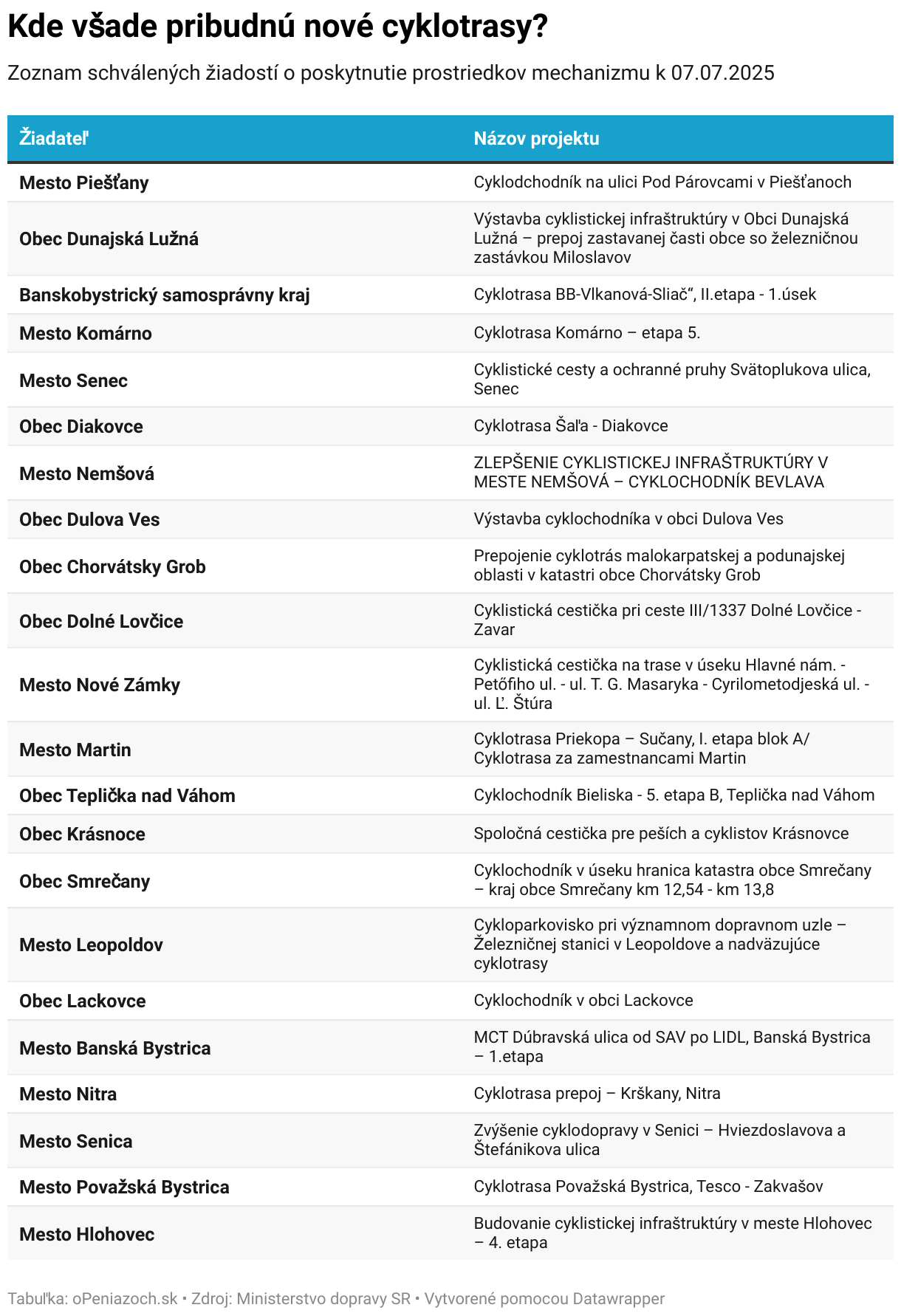 Zoznam schválených žiadostí o poskytnutie prostriedkov mechanizmu k 07.07.2025