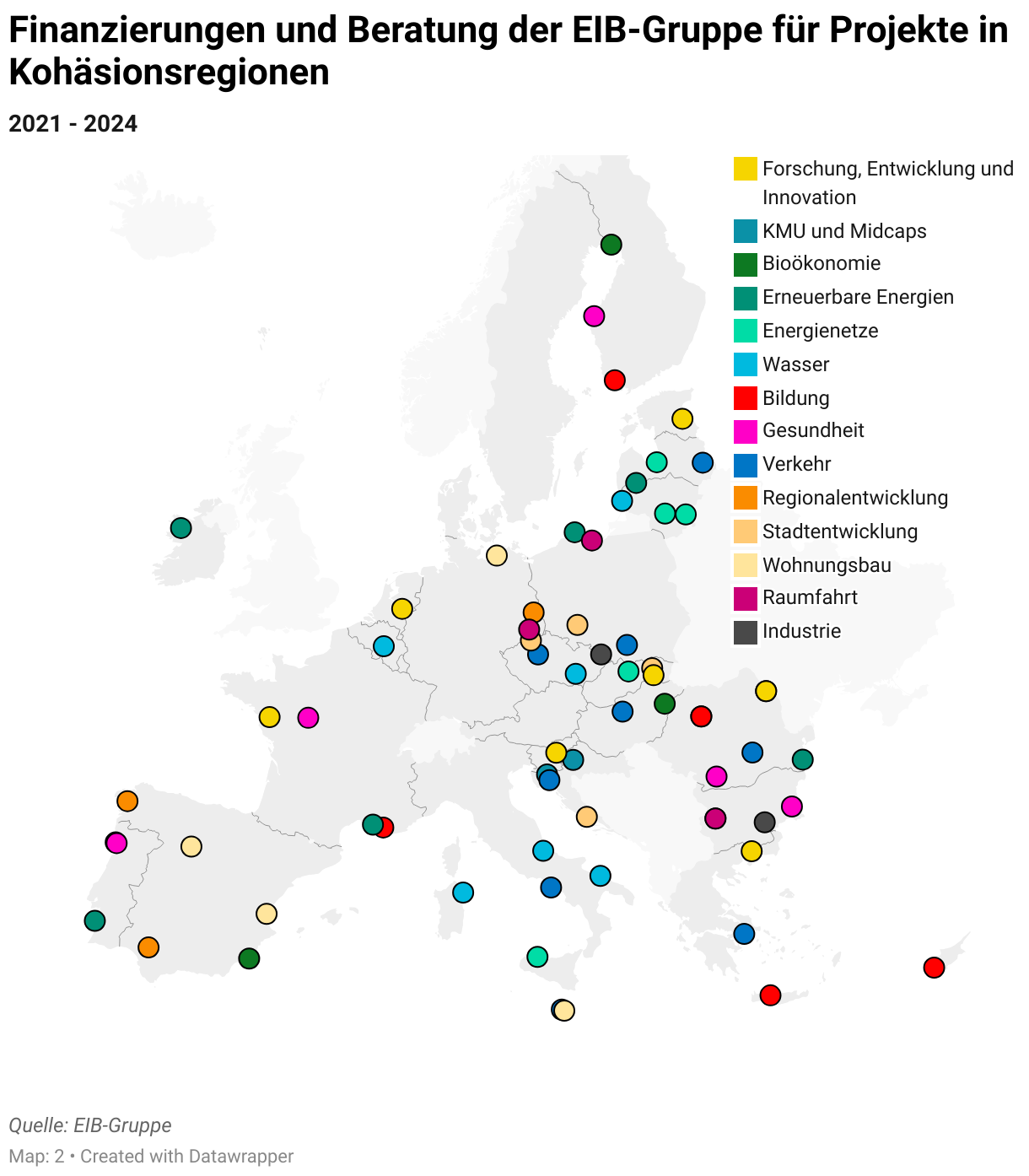 Finanzierungen und Beratung der EIB-Gruppe für Projekte in Kohäsionsregionen