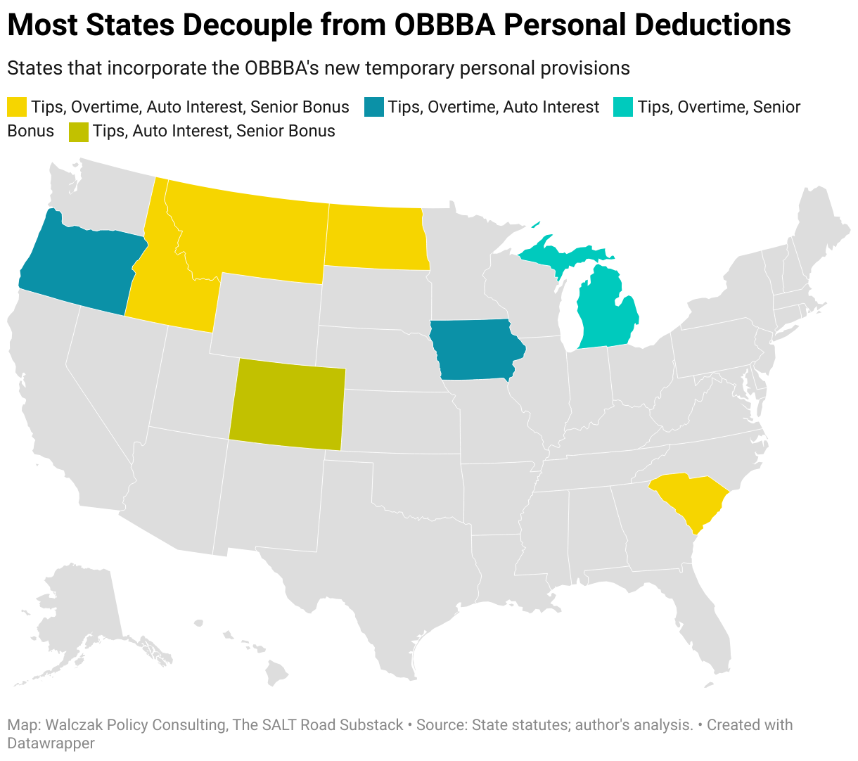 States that incorporate the OBBBA's new temporary personal provisions