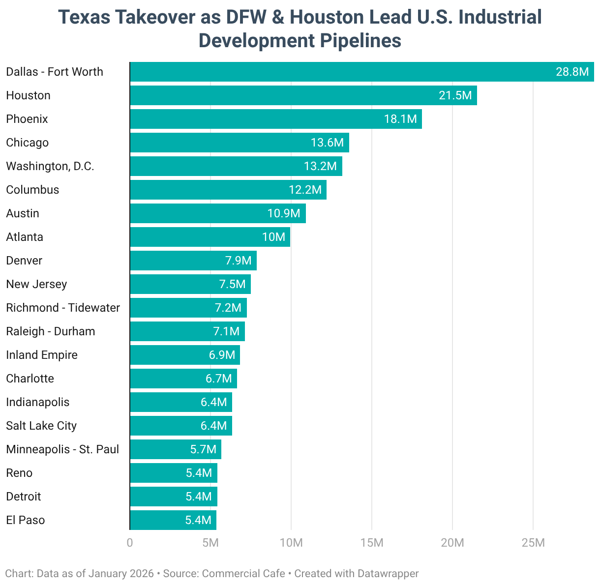 Texas Takeover as DFW & Houston Lead U.S. Industrial Development Pipelines