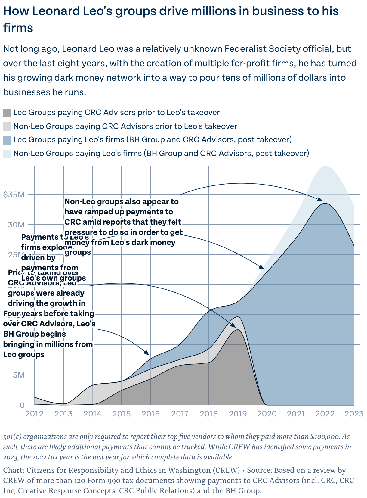 Not long ago, Leonard Leo was a relatively unknown Federalist Society official, but over the last eight years, with the creation of multiple for-profit firms, he has turned his growing dark money network into a way to pour tens of millions of dollars into businesses he runs.