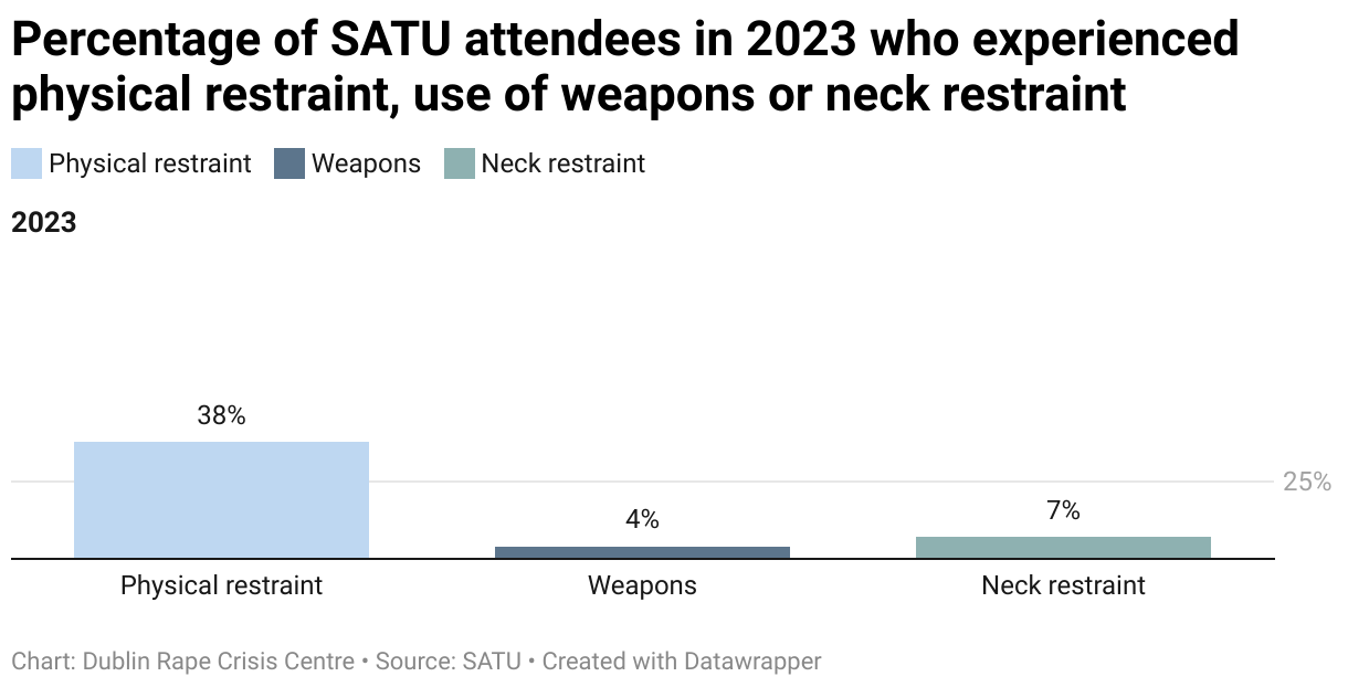 Percentage of SATU attendees in 2023 who experienced physical restraint, use of weapons or neck restraint