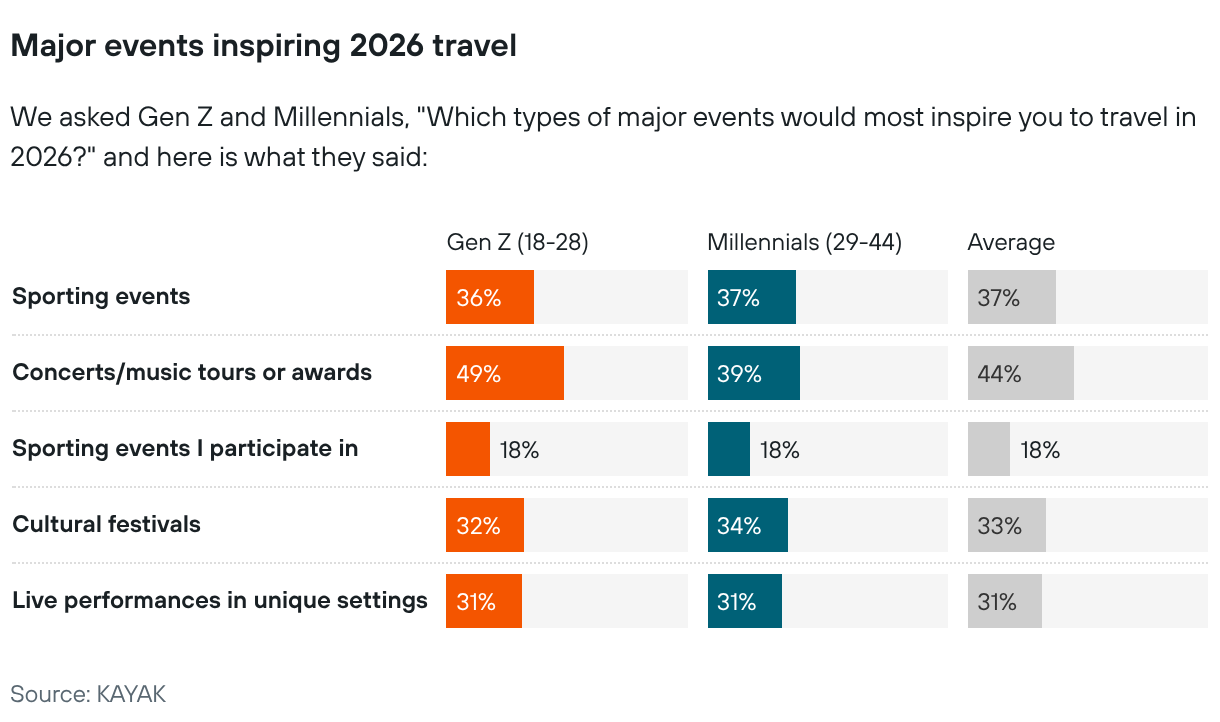 We asked Gen Z and Millennials, "Which types of major events would most inspire you to travel in 2026?" and here is what they said: