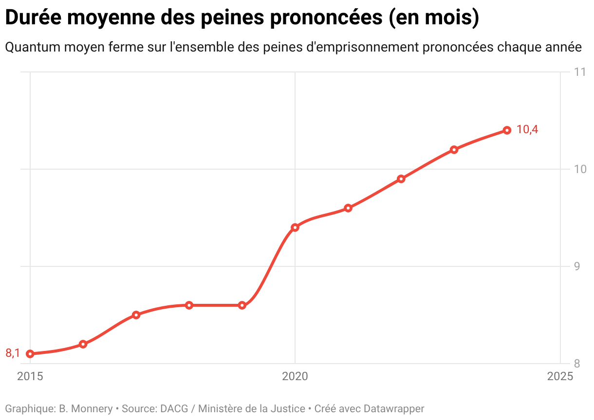 Quantum moyen ferme sur l'ensemble des peines d'emprisonnement prononcées chaque année