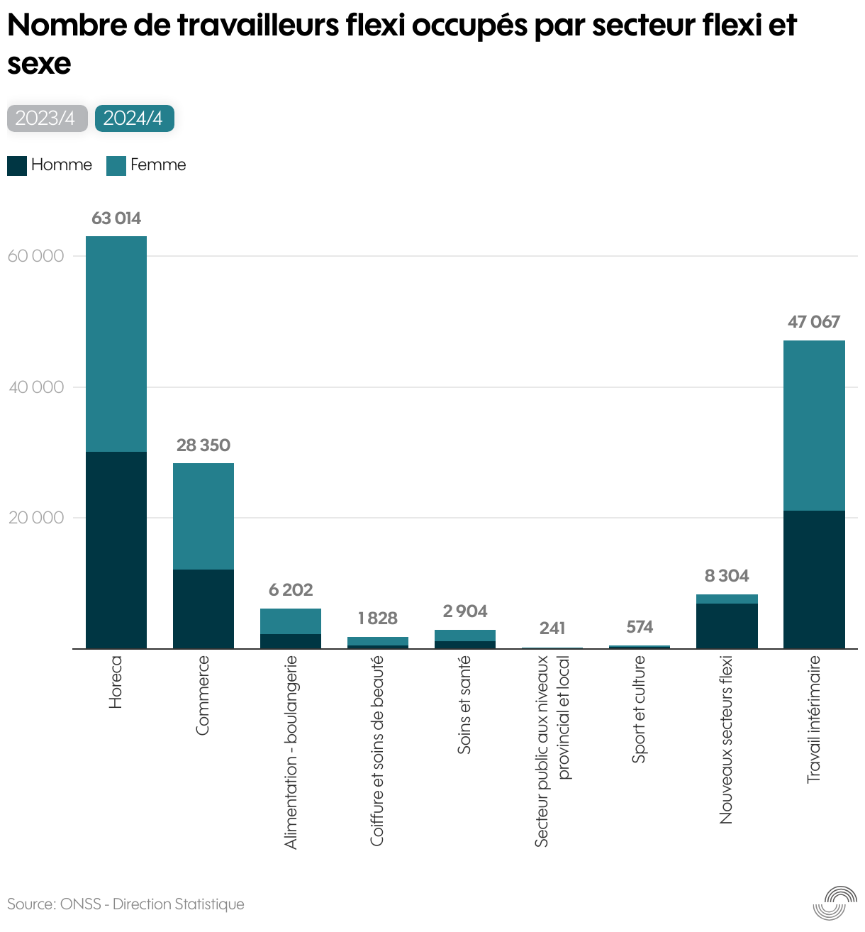 Nombre de travailleurs flexi occupés par secteur flexi et sexe