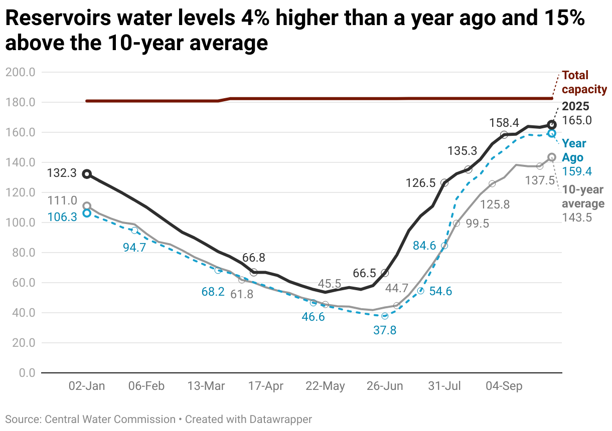 Reservoirs water levels 4% higher than a year ago and 15% above the 10-year average