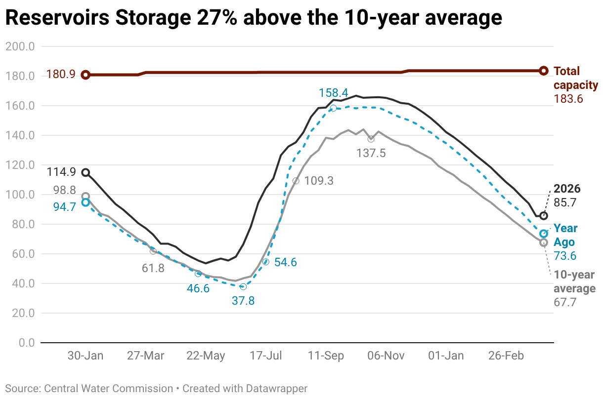 Reservoirs Storage 27% above the 10-year average