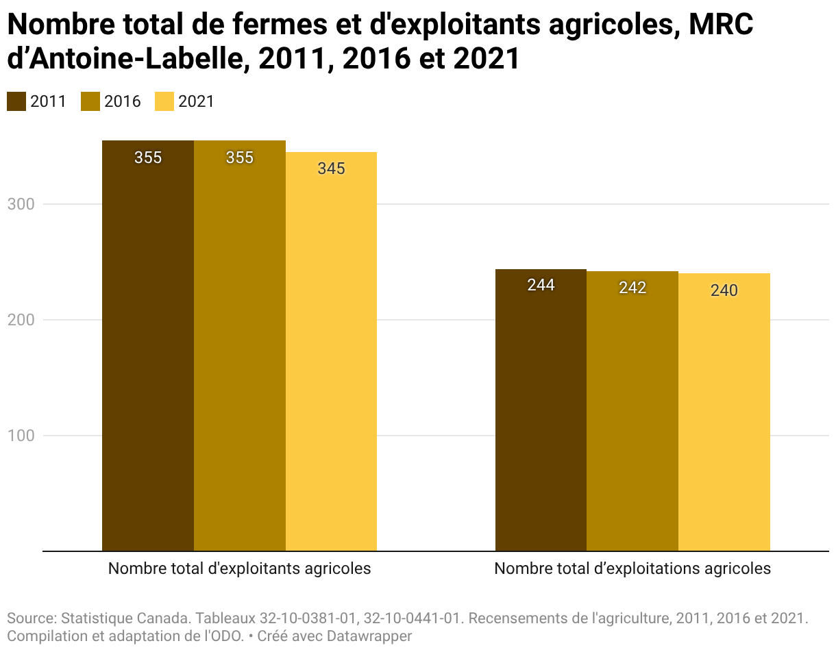 Nombre total de fermes et d'exploitants agricoles, MRC d’Antoine-Labelle, 2011, 2016 et 2021