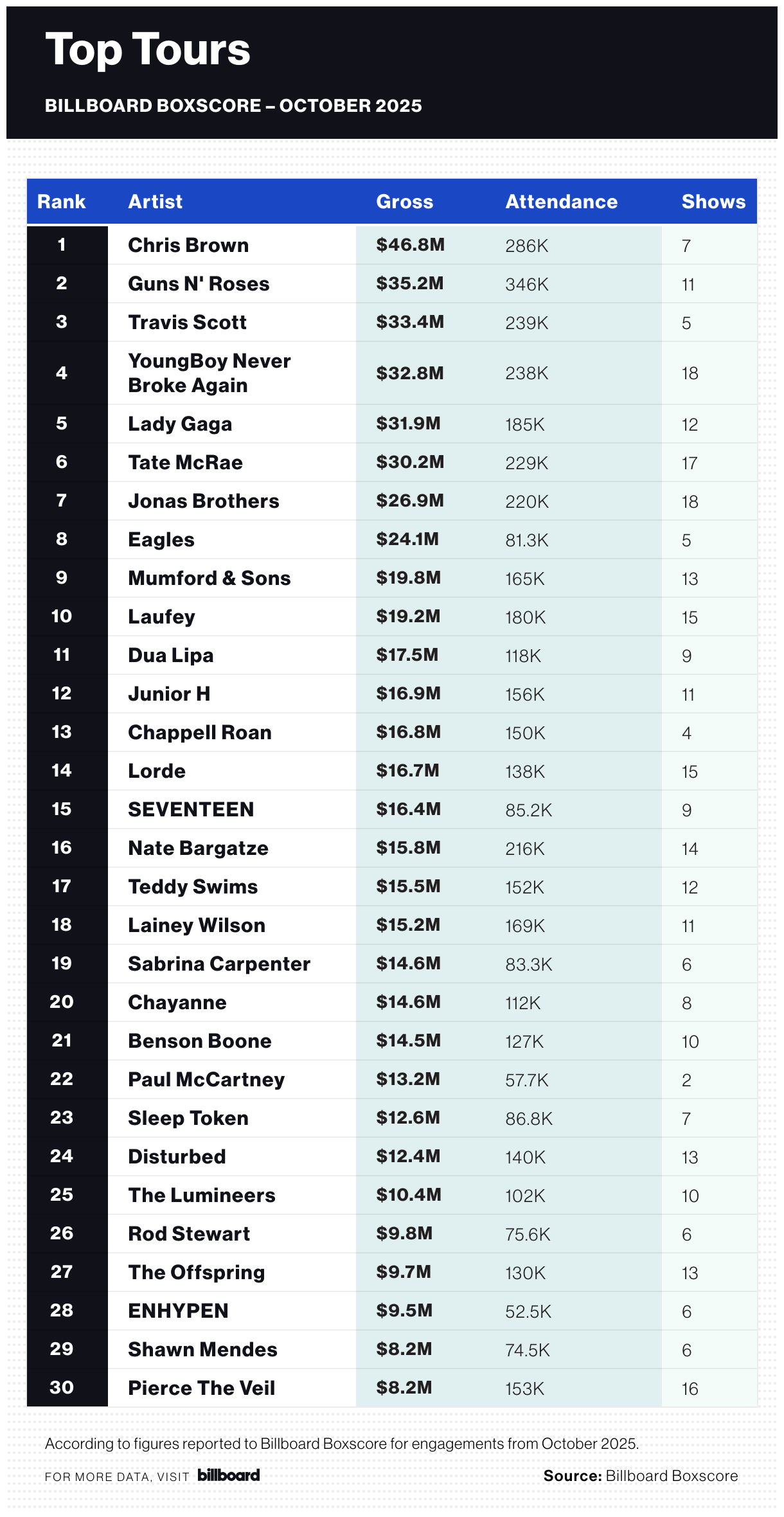 Billboard Boxscore – October 2025