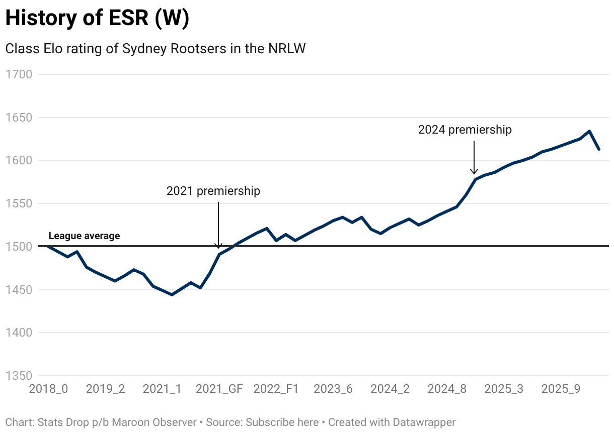 Class Elo rating of Sydney Rootsers in the NRLW