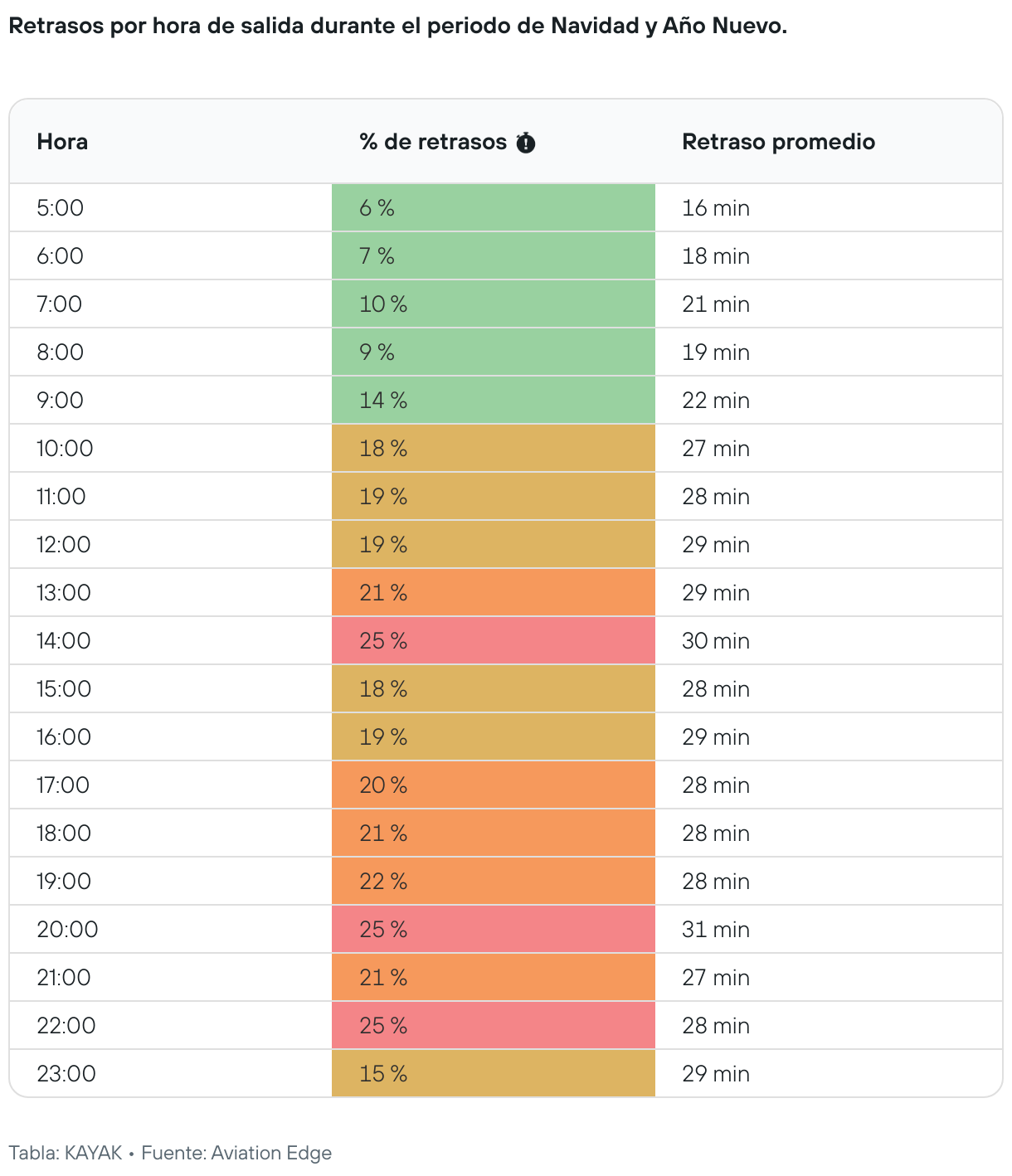 Retrasos por hora de salida durante el periodo de Navidad y Año Nuevo.