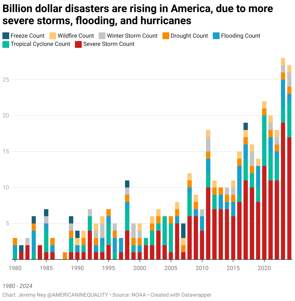 Billion dollar disasters are rising in America, due to more severe storms, flooding, and hurricanes
