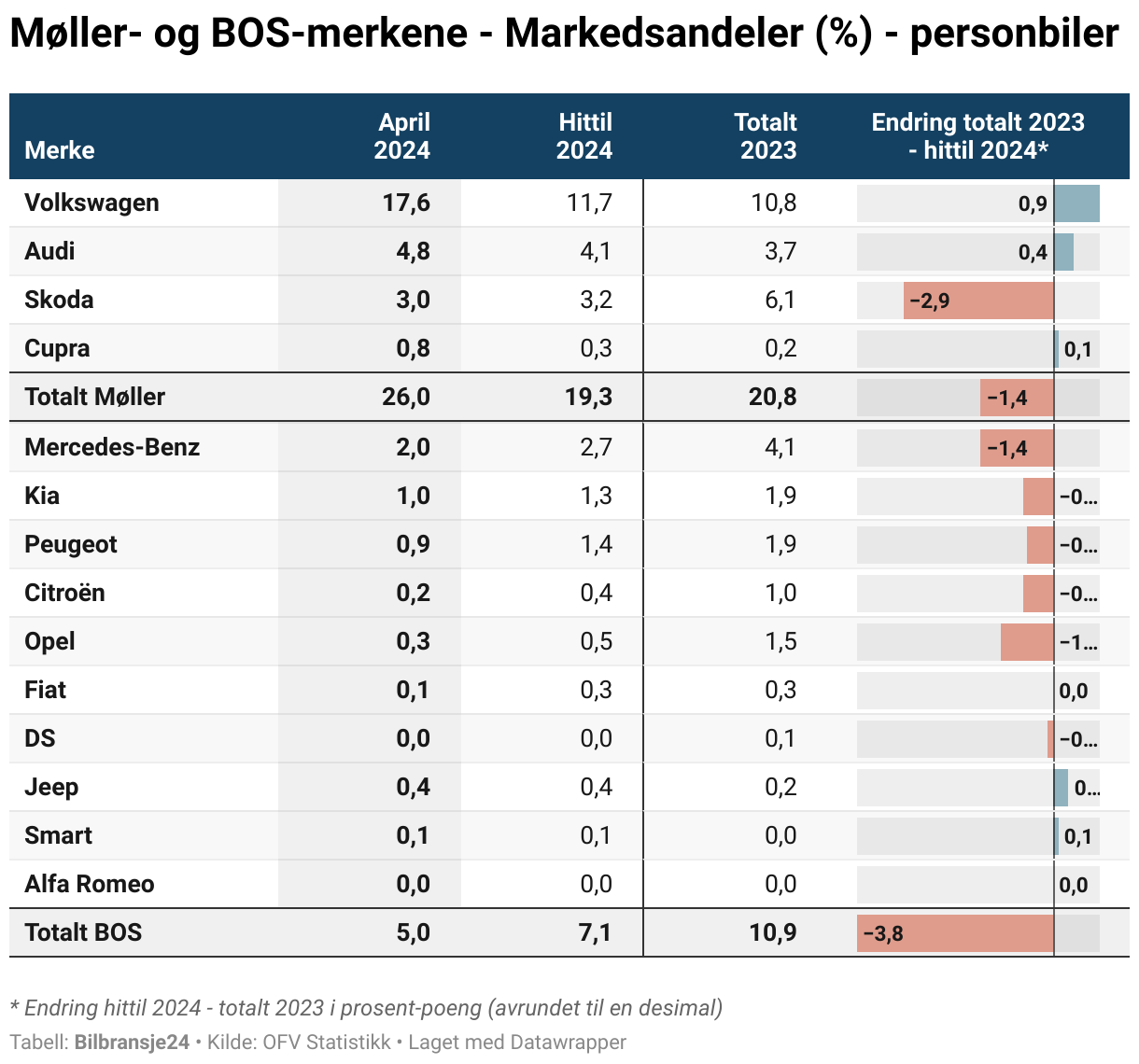 Møller- og BOS-merkene - Markedsandeler (%) - personbiler