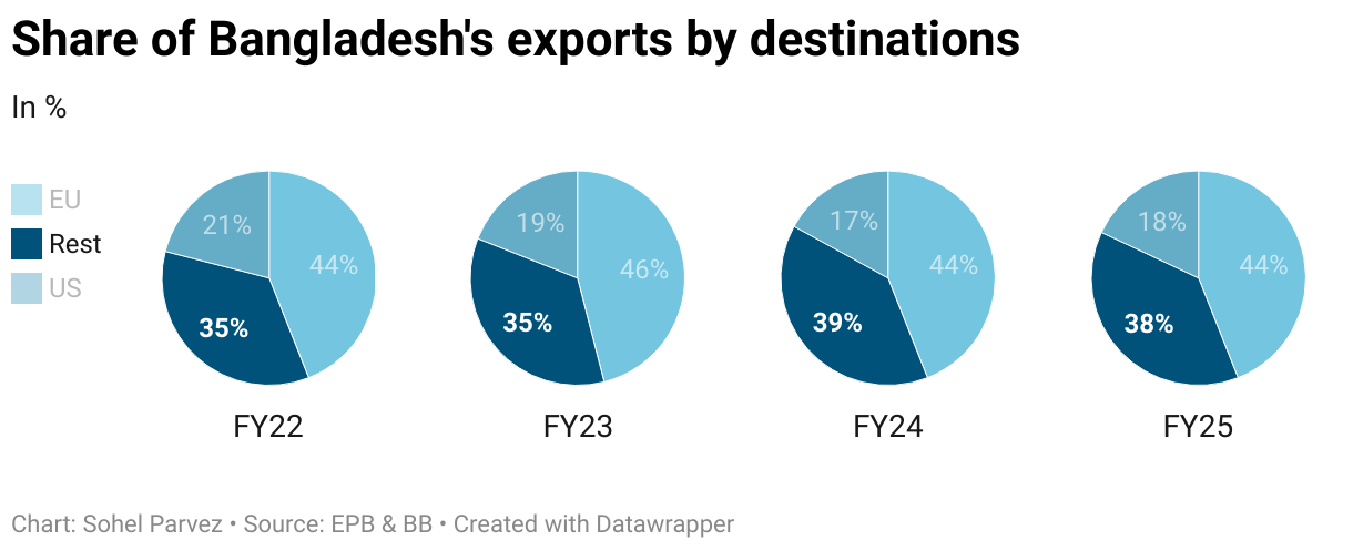 Share of Bangladesh's exports by destinations