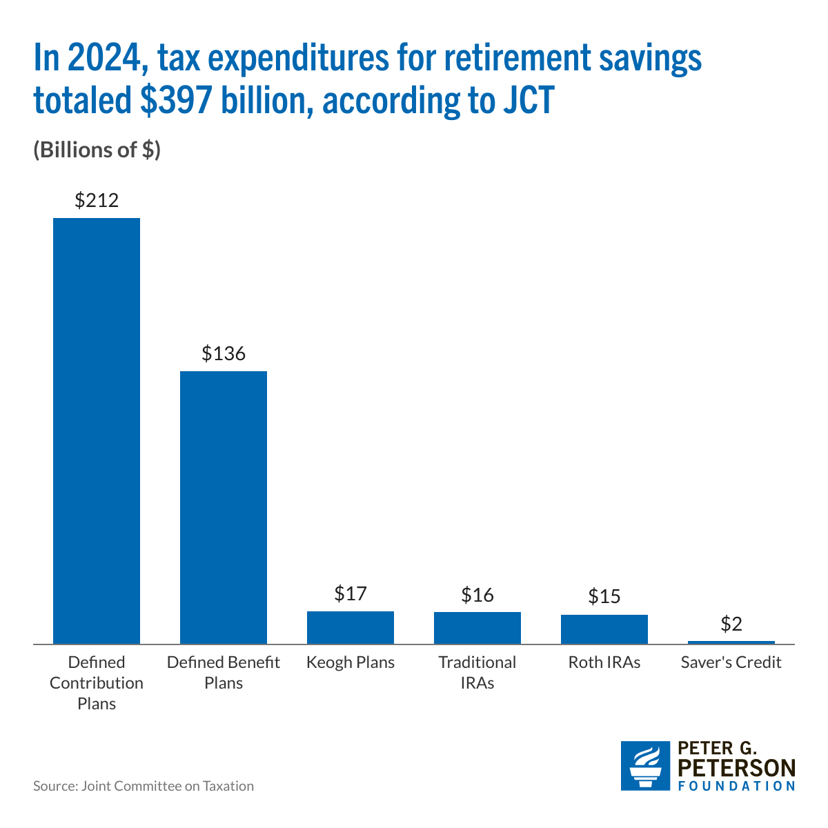 In 2024, tax expenditures for retirement savings totaled $397 billion, according to JCT