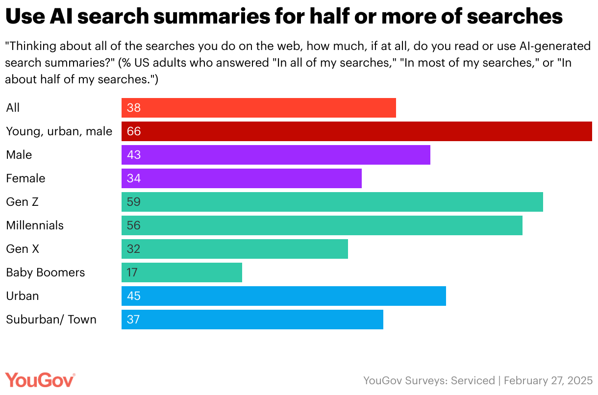 Use AI search summaries for half or more of searches