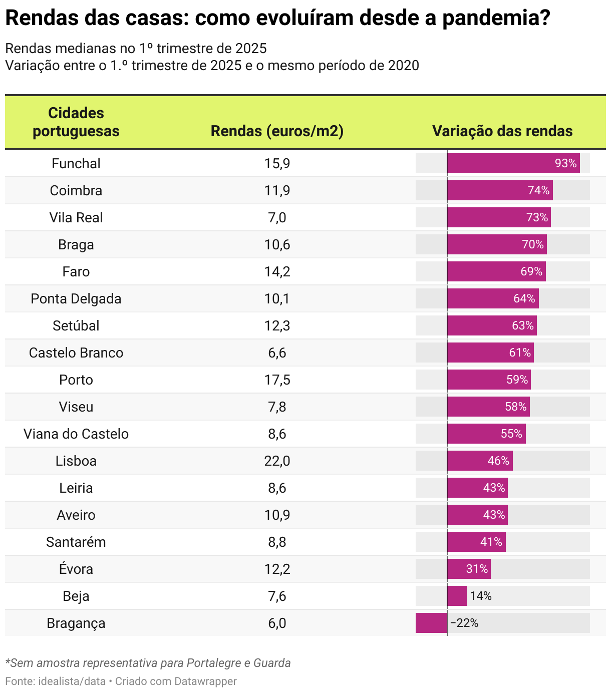 Rendas medianas no 1º trimestre de 2025 Variação entre o 1.º trimestre de 2025 e o mesmo período de 2020