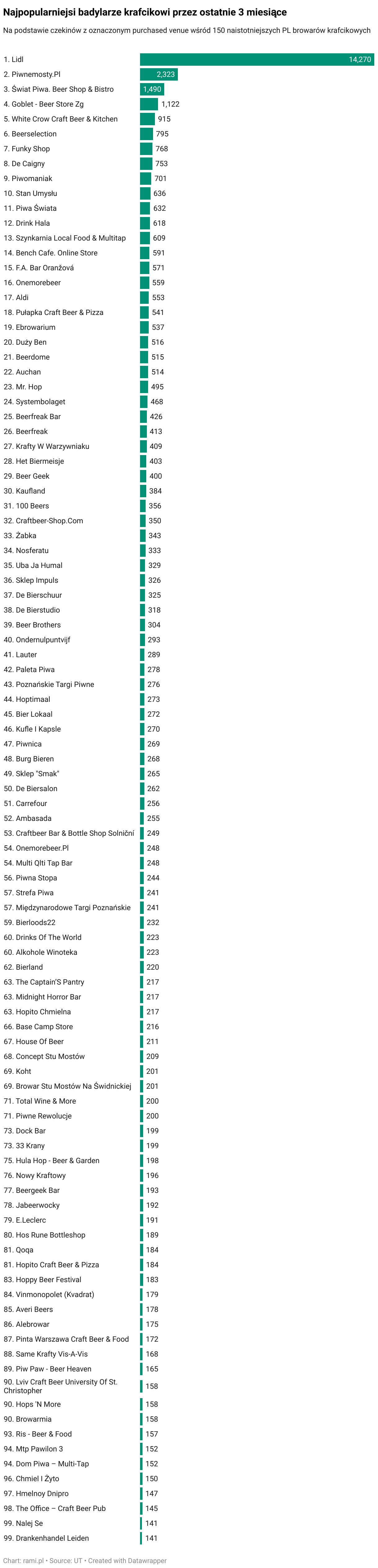 Na podstawie czekinów z oznaczonym purchased venue wśród 150 naistotniejszych PL browarów krafcikowych