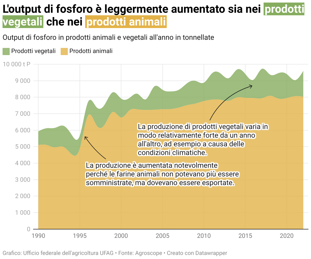 Output di fosforo in prodotti animali e vegetali all'anno in tonnellate