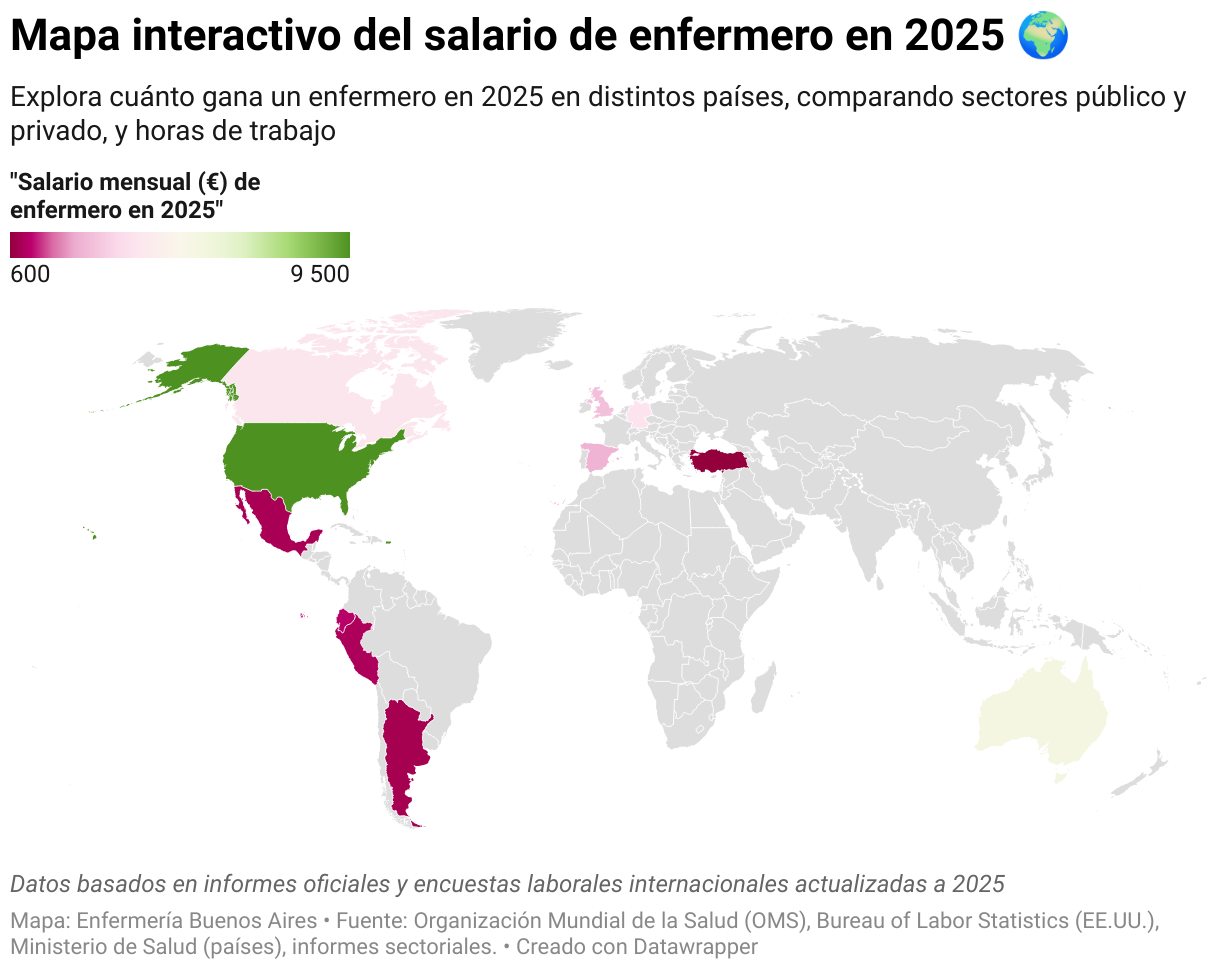 Explora cuĆ”nto gana un enfermero en 2025 en distintos paĆses, comparando sectores pĆŗblico y privado, y horas de trabajo