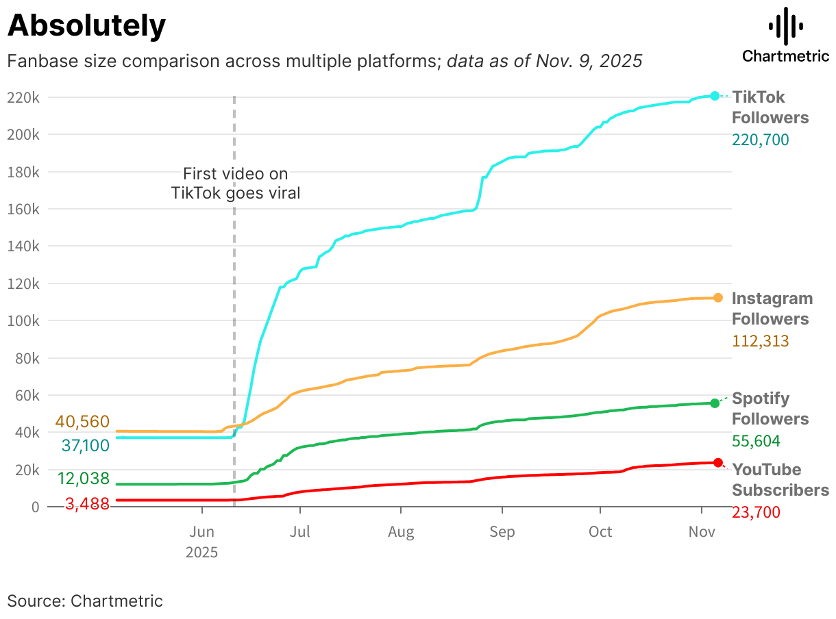 Fanbase size comparison across multiple platforms; data as of Nov. 9, 2025
