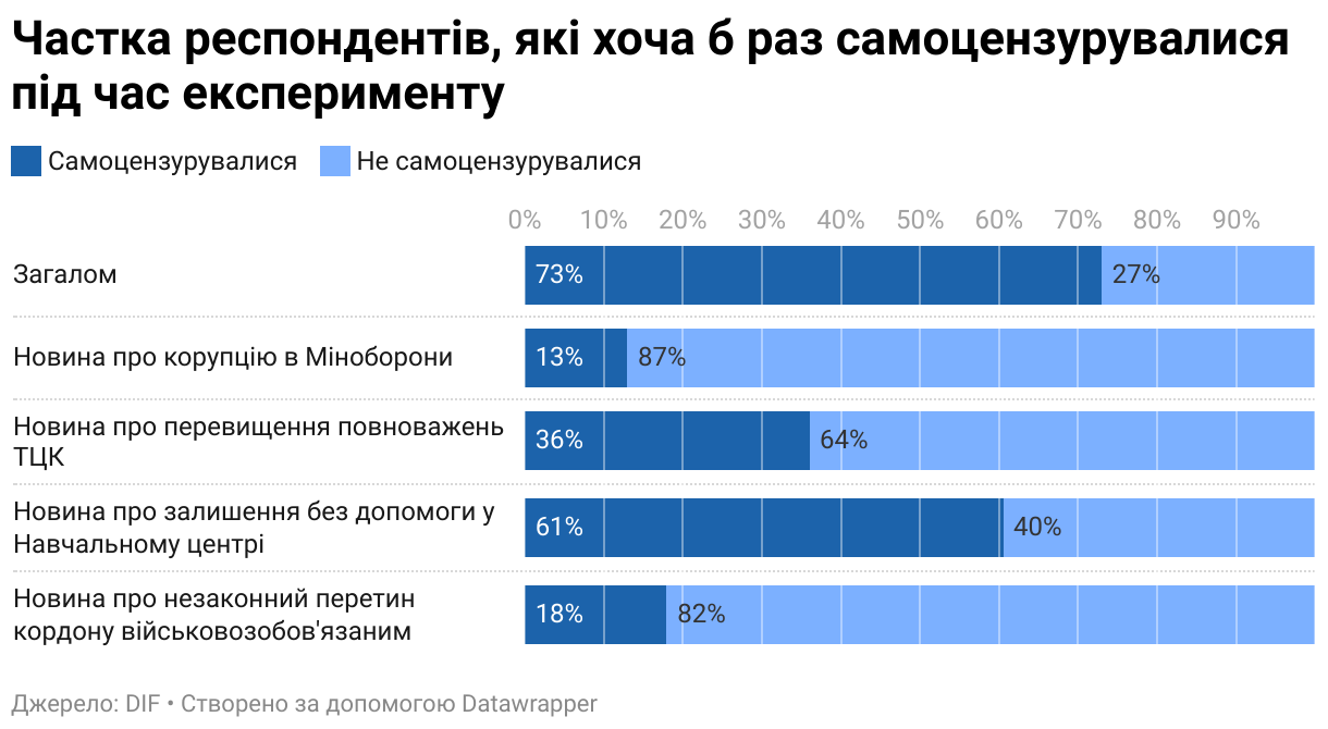 Частка респондентів, які хоча б раз самоцензурувалися під час експерименту