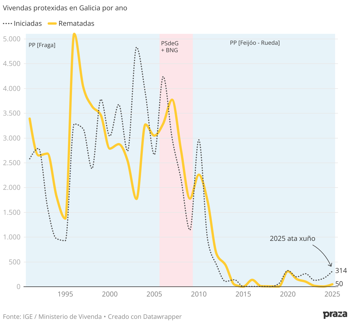 Vivendas protexidas en Galicia por ano