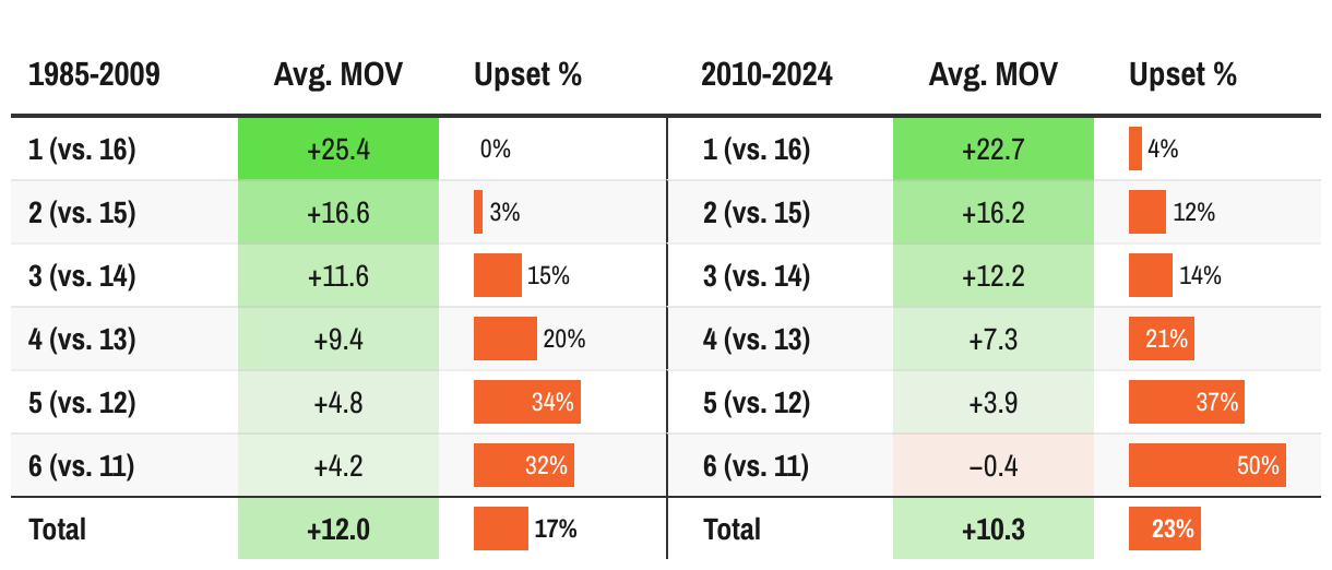 How top seeds have performed in the Round of 64, men's NCAA tournament